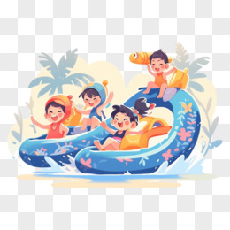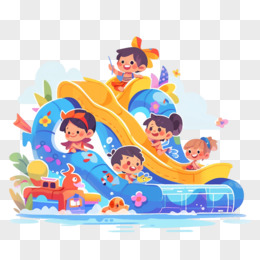 卡通儿童玩欢乐水上滑滑梯可爱元素