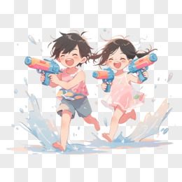 卡通小朋友们在水上乐园一群人玩耍开心元素