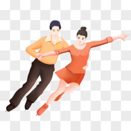 手绘双人花样滑冰免抠素材