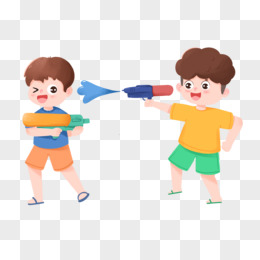 手绘男孩玩水枪互射免抠素材