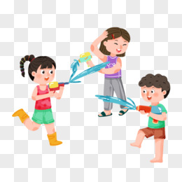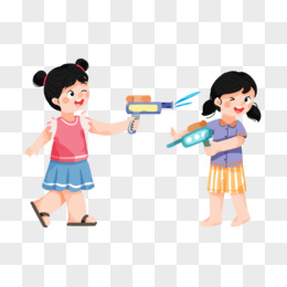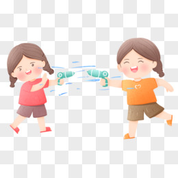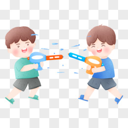 手绘小伙伴水枪打水仗素材
