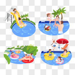 手绘插画水上乐园开心玩耍等小场景元素