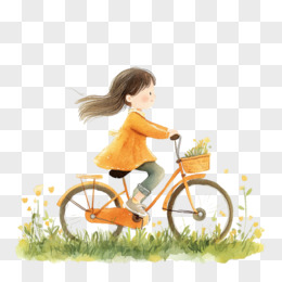 水彩春季活动骑自行车免抠元素