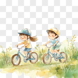 手绘卡通户外活动骑行免抠元素