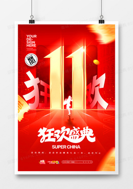 红色创意狂欢双11活动宣传主题海报设计