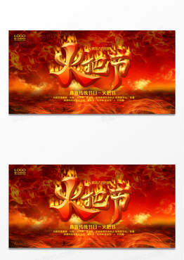大气时尚红色火光火把节宣传展板