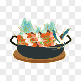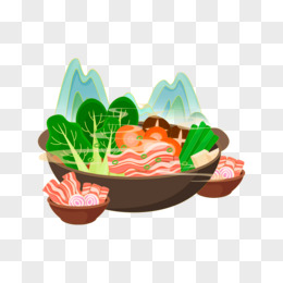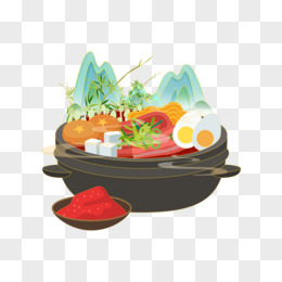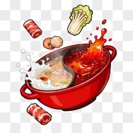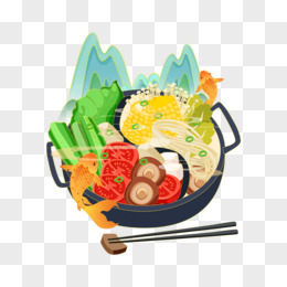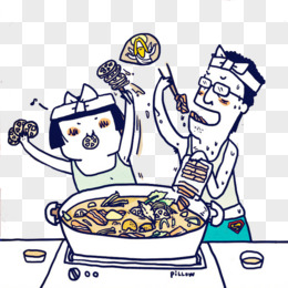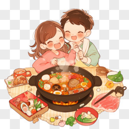卡通年轻情侣在吃火锅吃饭免抠元素