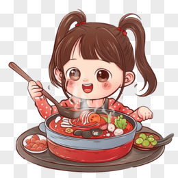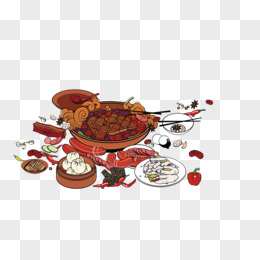 手绘鸳鸯火锅中国美食四川火锅美食素材