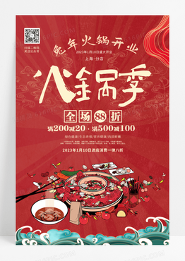 火锅季开业大吉卡通可爱手绘红色背景海报