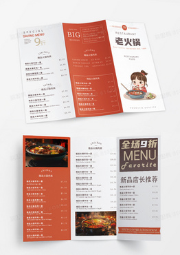 卡通手绘元素做旧风格老火锅火锅店三折页菜单模板