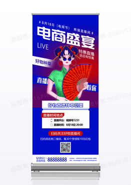 紫色炫彩渐变健身时尚电商直播展带货架海报易拉宝