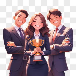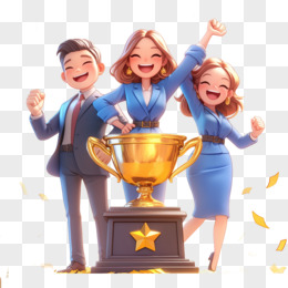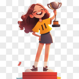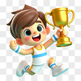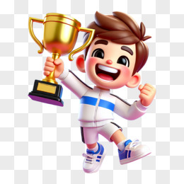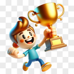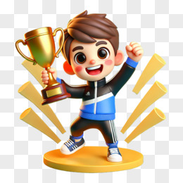 3D卡通小男孩一只手举起一个奖杯免抠元素