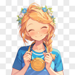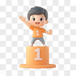 3D卡通戴着金牌的小男孩高举一只手免抠元素