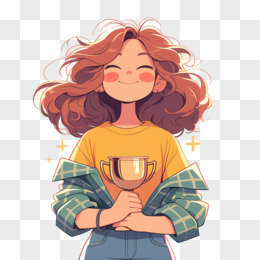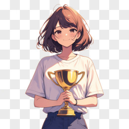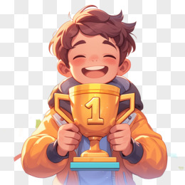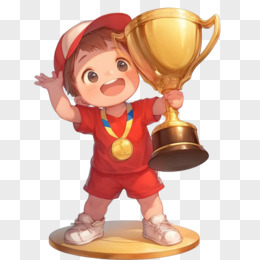 卡通穿着运动服的小男孩手捧奖杯奖杯免抠元素