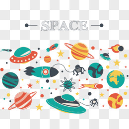 一组卡通蓝色线条宇宙飞船贴纸合集系列五素材