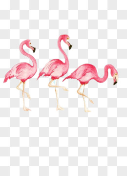 卡通手绘女孩带着火烈鸟游泳圈免抠素材