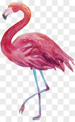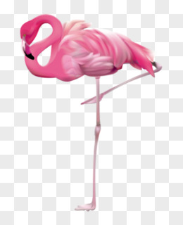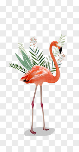 卡通手绘女孩带着火烈鸟游泳圈免抠素材