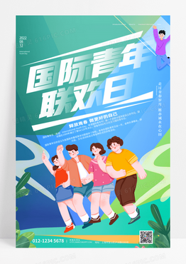 手绘彩色渐变欢呼庆祝的年轻人素材