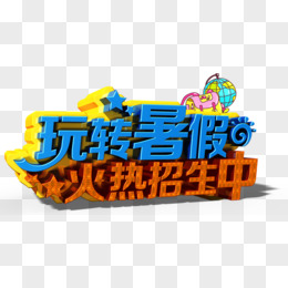 橙色立体暑假班开课啦字体设计