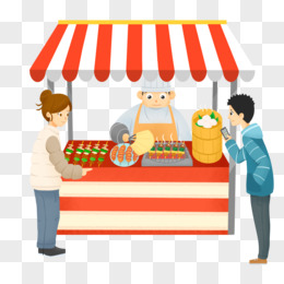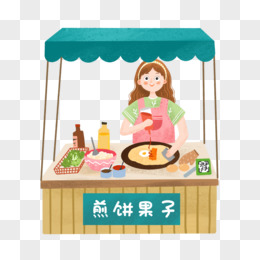手绘卡通妈妈和孩子在路边买麻辣烫免抠元素