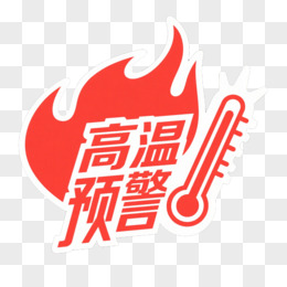 红色艺术字高温预警和温度计火焰免抠元素