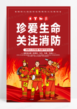 119消防宣传日红色大气珍爱生命关注消防2022消防日宣传全国消防日海报设计