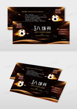 黑金高端大气光效2024欧洲杯足球入场券门票火焰足球效果