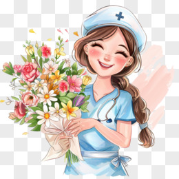 插画护士节护士手捧鲜花免抠素材