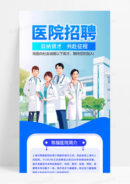 蓝色插画风医院招聘手机长图落地页