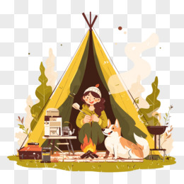 一组卡通手绘插画风学生军事夏令营项目合集之户外烹饪元素