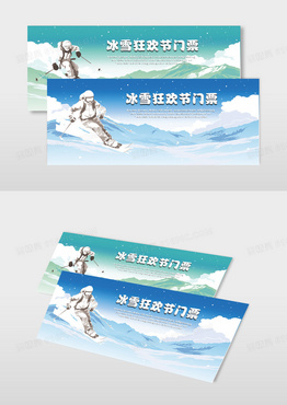 简约冬季户外滑雪运动门票入场券名片