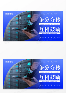 蓝色科技简约风企业文化争分夺秒互相鼓励套图企业文化套图
