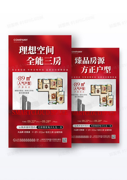 红色楼市地产价值点地产行业价值点户型图手机海报组合