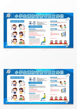 蓝色简约时尚小学生预防近视护眼保护眼睛展板宣传保护眼睛预防近视宣传栏