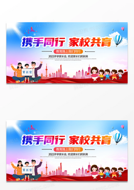 大气时尚创意携手同行家校共育秋季开学家长会宣传展板