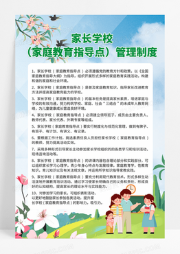 蓝色清新家长学校管理制度卡通班级公约班级约定班规海报展板