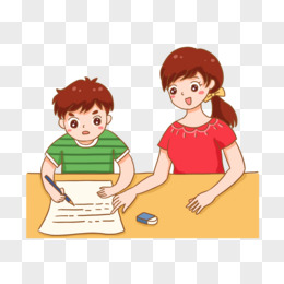 手绘卡通妈妈辅导写作业表情包免抠元素