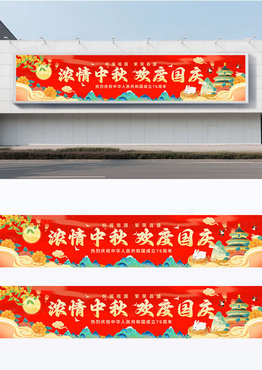 红色喜庆2025家国同庆76周年月满中秋浓情中秋横幅