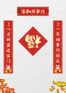 红色简约2023兔年新春家和万事兴春联对联