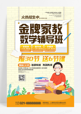 黄色渐变金牌家教数学辅导班招生宣传海报