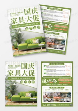 绿色手绘简洁国庆家具大促国庆家具宣传单国庆宣传单
