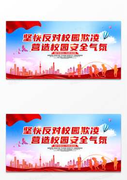 大气红色坚快反对校园欺凌营造校园安全气氛宣传展板校园欺凌