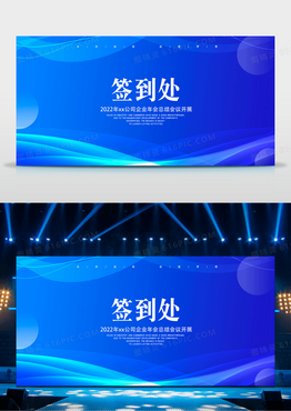 蓝紫色渐变背景签到处2022公司企业年会总结会议开展展板