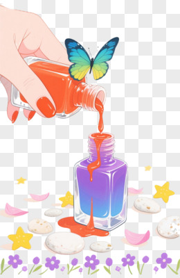 水彩风指甲油蝴蝶装饰图案