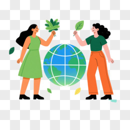 绿意女性地球仪扁平插画元素
