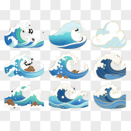 十二组蓝色海浪插画元素
