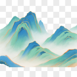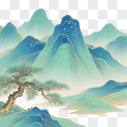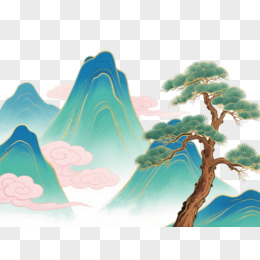 青绿山水写意装饰图案