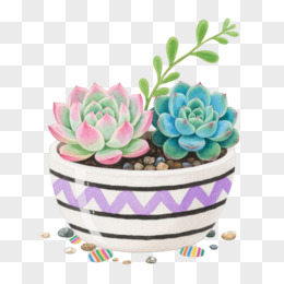 水彩多肉植物盆栽装饰图案