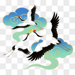 白鹤祥云国风插画元素