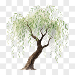水彩垂柳树卡通手绘元素